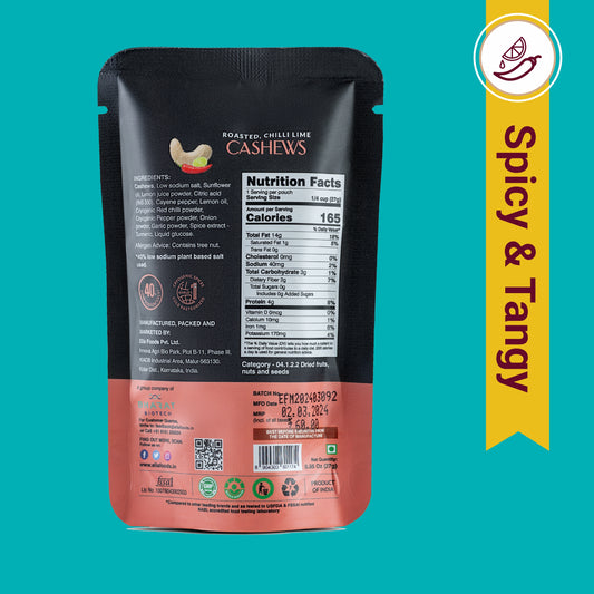 Ella Foods Chilli Lime Cashews Mini Pack (5 x 27g) | Tangy & Spicy Roasted Cashew Snack | 40% Low Sodium | Travel-Friendly | 6-Month Shelf Life