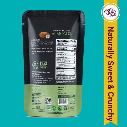 Ella Foods Coconut Toasted Almonds Mini Pack (5 x 27g) | Roasted Almond Snack | 40% Low Sodium | Naturally Sweet & Crunchy | Healthy On-the-Go Snack | 6-Month Shelf Life