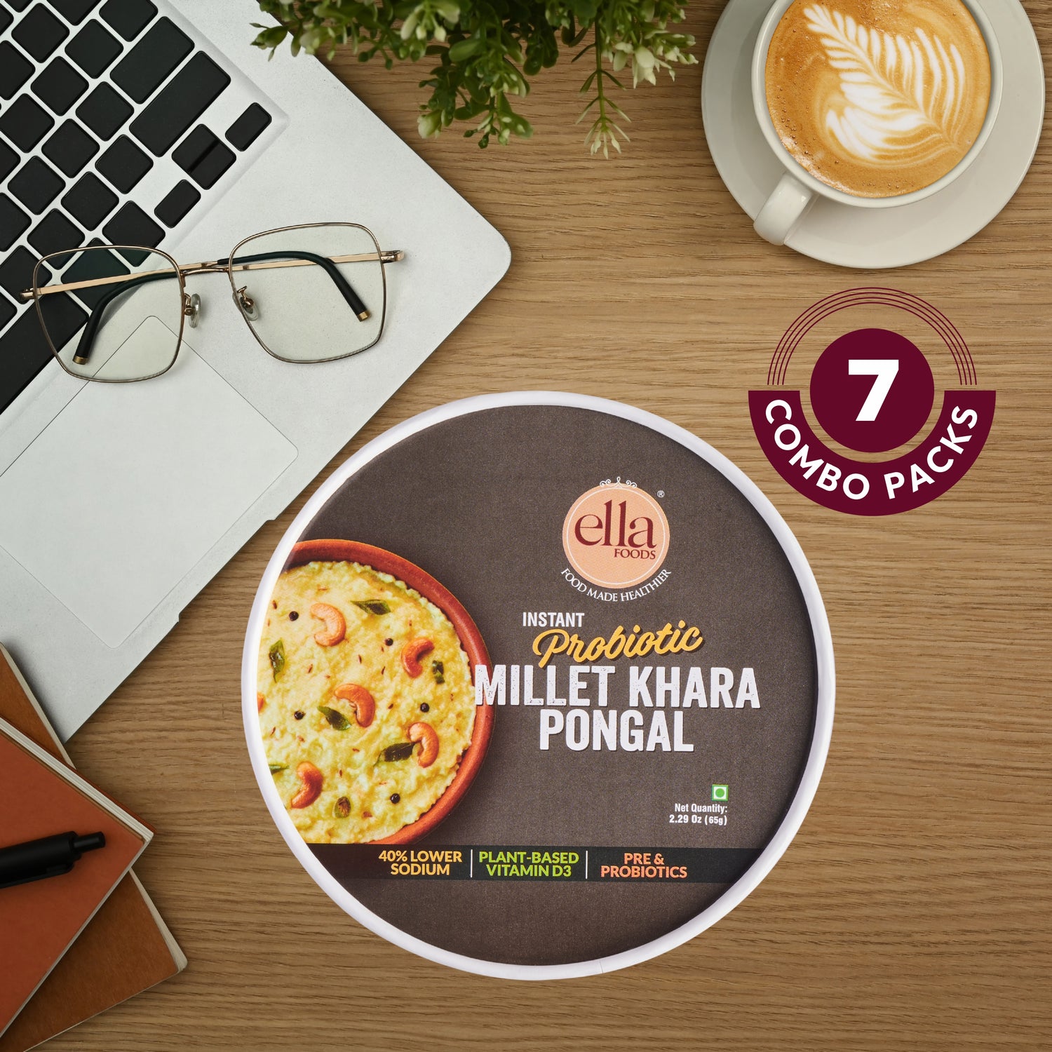Ella Foods Probiotic Millet Khara Pongal | Ready to Eat | 65g Each | Shelf Life: 6 Months | Multi Pack