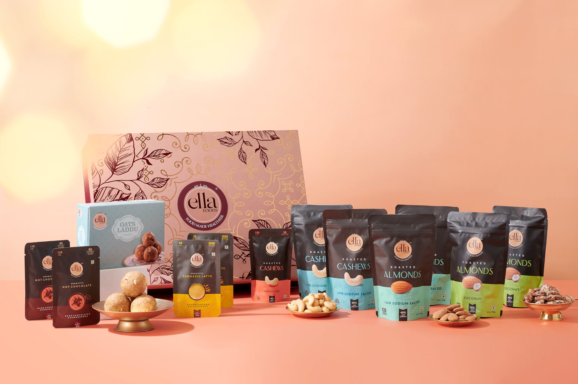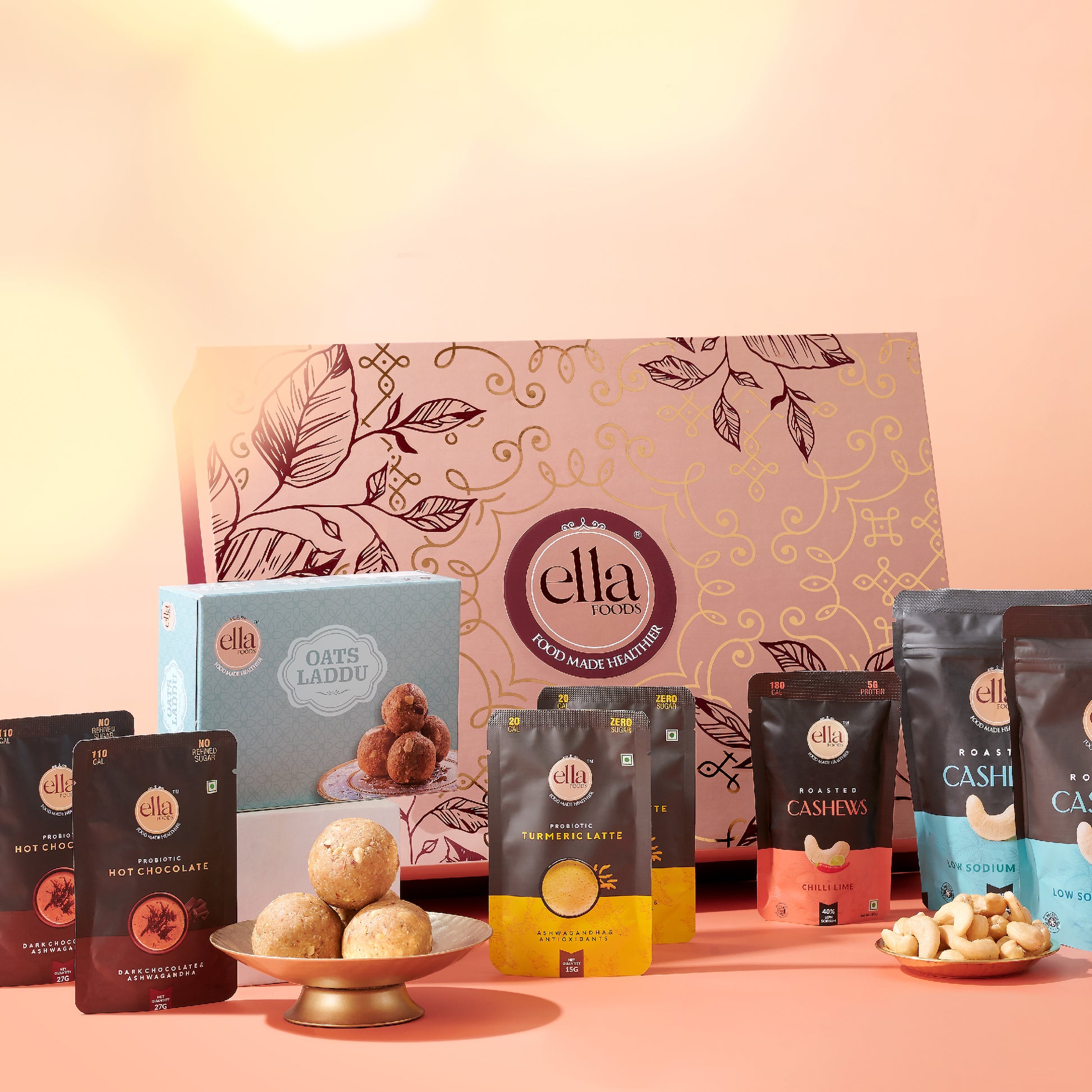 Ella Foods Majestic Gift Hamper | Luxurious Festive Gift Box with Roasted Nuts & Beverages | Perfect for Diwali, Weddings & Corporate Gifting