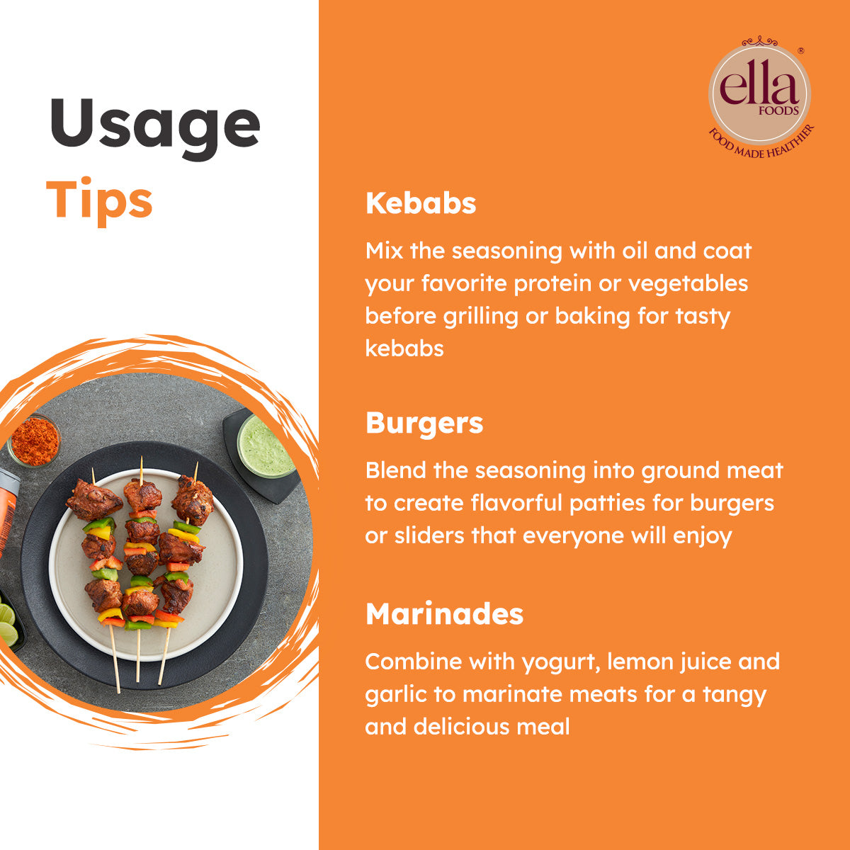 Hailing from the Middle East & Northern Frontier, this exotic seasoning is the perfect all-purpose mix made with a blend of paprika, garlic powder, cayenne peppers and oregano. Its made with salt that has 50% less sodium and it's also rich in essential oils and antioxidants. You can buy our Kebab BBQ seasoning online and sprinkle it to make all your favourite meals even more exciting.