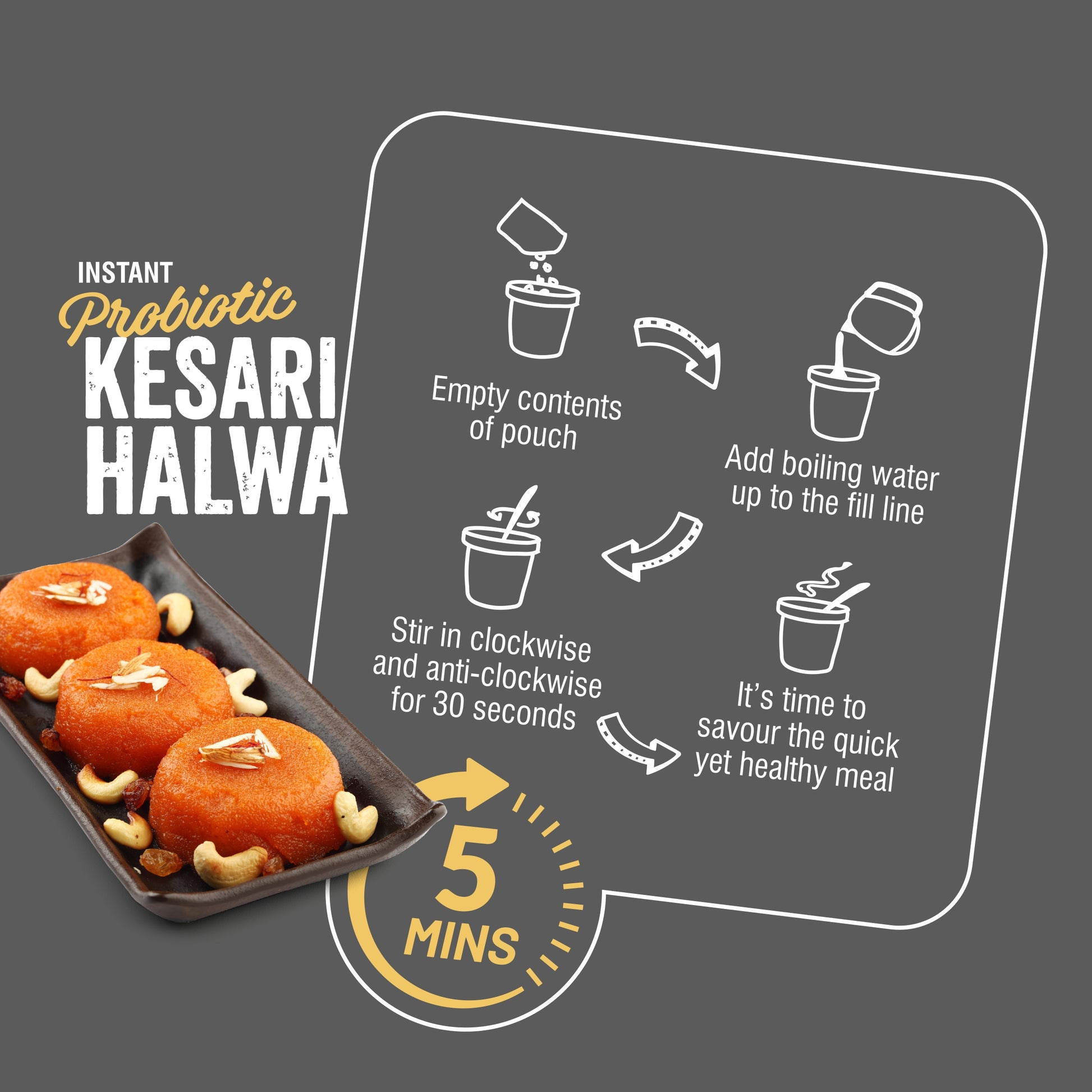 >Kesari Halwa (65g): A rich, fragrant sweet treat made from semolina, infused with saffron and cardamom—ideal for rounding off any meal or satisfying a sweet craving.